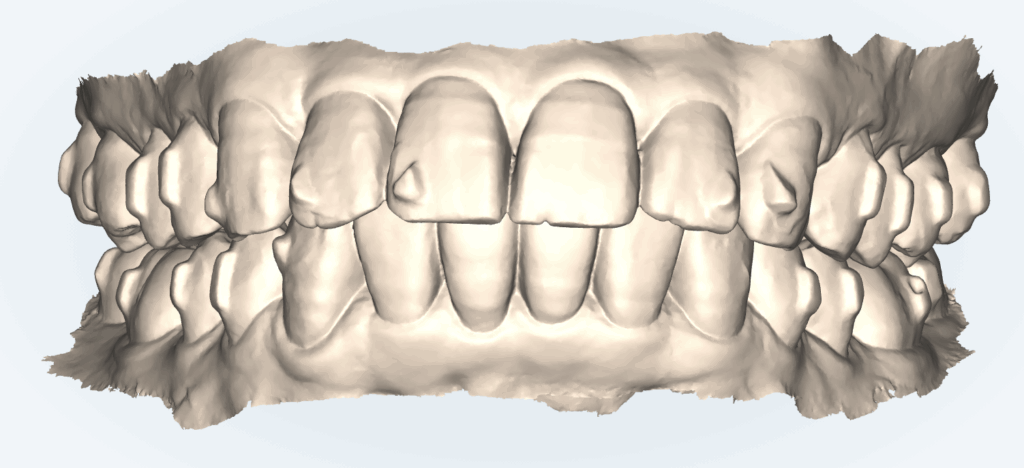 最初に比べたら随分整っているのですが、患者さん自身が出っ歯感がもう少し改善させたいという要望がありました。いくつか方法論があるのですが、今回は前歯の横幅も気になるので、IPR(歯と歯の間を削って形を修正)して隙間を作って出っ歯感を改善することにしました。