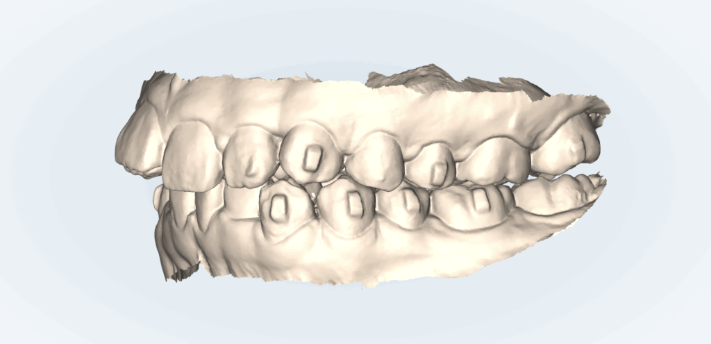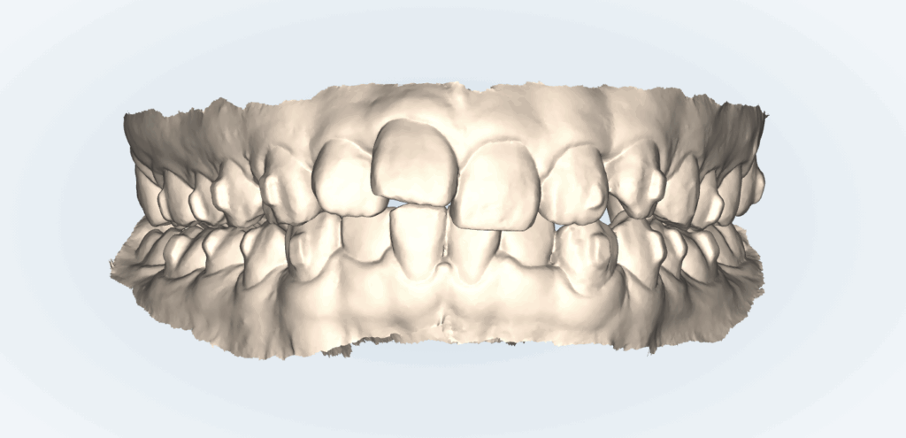 前歯を整えるために奥歯を奥へ移動させて隙間作りをしていました。良い感じに奥歯が奥へ移動したので、その隙間を利用して前歯を整える段階になってきました。