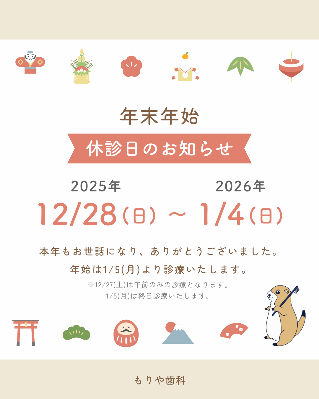 2025年12月28日から2026年1月4日までの年末年始の間、休診とさせていただきます。