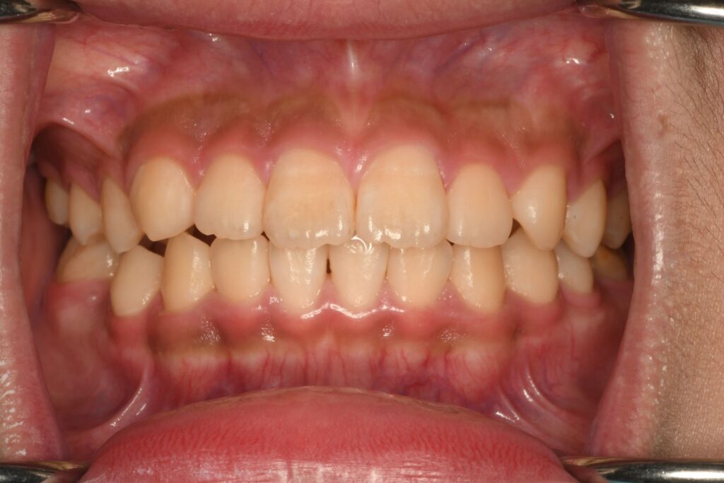 今回矯正治療を受けるとこになったのは、幼少期より定期的にメンテナンスを受けていて、先天性欠損歯であることがわかり、歯と歯の隙間を無くす為に矯正治療を選びました。