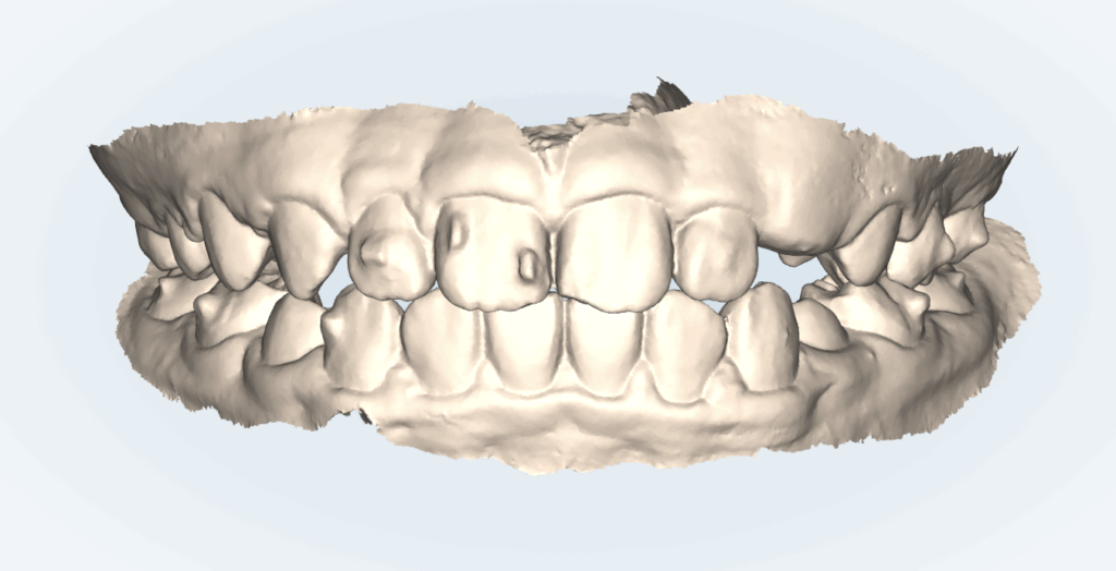 一旦、ステージの最後まで来ましたが、治療期間中に歯の生え変わりが起きました。年齢的に当たり前のことです。当初予想していた歯の大きさと若干のズレがあるため補正するために治療を継続することにしました。随分気になっていた前歯も動いてきています。